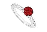 Ruby and Diamond Engagement Ring : 14K White Gold - 0.50 CT TGW Size 4.5