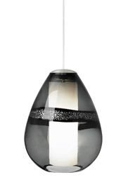 LBL Lighting PF578GYSCCF Miyu Fluorescent Mini Pendant?Finish:Satin Nickel, Glass:Gray, Light Bulb:(1)32w Triple Tube GX24q-3 CFL Beautiful transparent teardrop-shaped glass with silver leaf band surrounds an opal glass diffuser. Field-cuttable cord. May also be lamped with a GX24Q-3 26 watt triple tube compact fluorescent lamp (not included).
