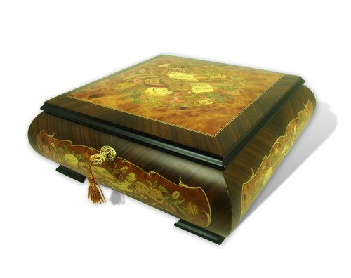Hand Made Sorrento 18 Note Musical Jewelry Box featuring Floral and Instrument Theme Inlay (From This Moment, Shania Twain))