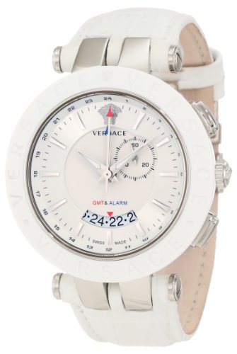 Versace Men's 29G9S1D001 S001 V-Race White Rubber Bezel Dual-Time White Leather Big Date Watch