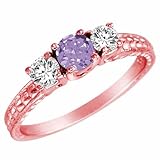 | ✚✚✚ 18K Rose Gold Round 3 Stone Diamond and Tanzanite Ring With Cobra Design Shank (0.95 ctw) Size 8 1/ This dazzling sparkling timeless ring is classic and can be used as an engagement ring, anniversary ring, bridal ring, promise ring, proposal ring, fashion ring, wedding ring, cocktail ring and also to represent eternal love between you and that special someone. This 18K rose gold diamond ring is prong set with 2 round diamonds and 1 round Tanzanite gemstone. The total carat weight of all the stones are approximately 0.95 carats. The diamonds are H-I color and SI-I2 clarity. The ring band measures approximately 1.80 mm wide and 1.0 mm thick.