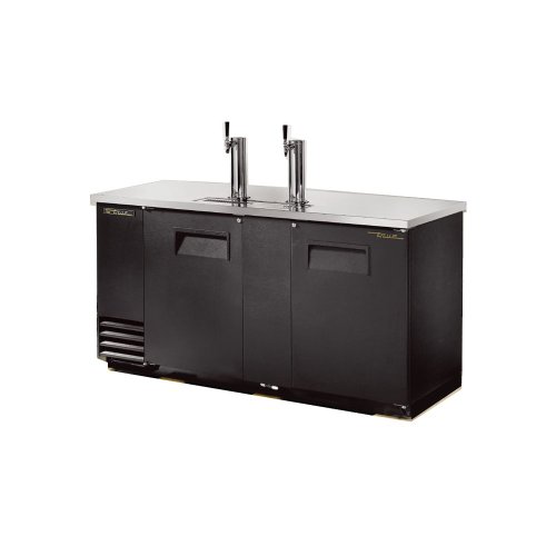 #True Black 2-Tap Direct Draw Beer Dispenser f/ 3 Half-BarrelsThe True direct draw beer dispensers are designed using the highest quality materials. The over sized refrigeration system assures that you can serve the coldest product to customers. The refrigeration system holds temperatures between 33°F and 38°F. This beer dispenser has an easy to reach storage area for chilled glasses. The exterior is wear resistant laminated black vinyl with a matching black aluminum back. The countertop is 300 stainless steel. There are two 3" diameter stainless steel insulated beer columns containing cold air to reduce foaming so you can serve a perfect glass of beer every time. Width: 69-1/8" Depth: 27-1/8" Height: 37" Weight: 345 lbs Capacity: 3-Half barrels 1/3 HP 8.5 Amps NEMA config: 5-15P 300 series stainless steel NSF-7 compliant Ecomate insulation Zero ozone depletion (ODP), zero global warming potential (GWP) CFC free 134A refrigerant Refrigeration system holds temperatures between 33°F and 38°F Door locks standard Holds all types of beer kegs 2 Stainless steel doors 5 year condenser warranty Unit is pre-wired for 115/60/1 phase 15 amp outlet Made in the USA Model #: TDD-3 888889