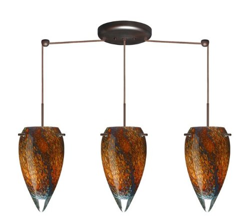 #Light Bulb:(3)100w A19 Med F Incand, Glass:Ceylon, Finish:Bronze This appealing three light pendant provides a versatile solution for decorative lighting. Handcrafted European glass 10' Clear-coated SVT cords Includes two stem hooks Suitable for sloped ceilings Dimmable with standard incandescent dimmer